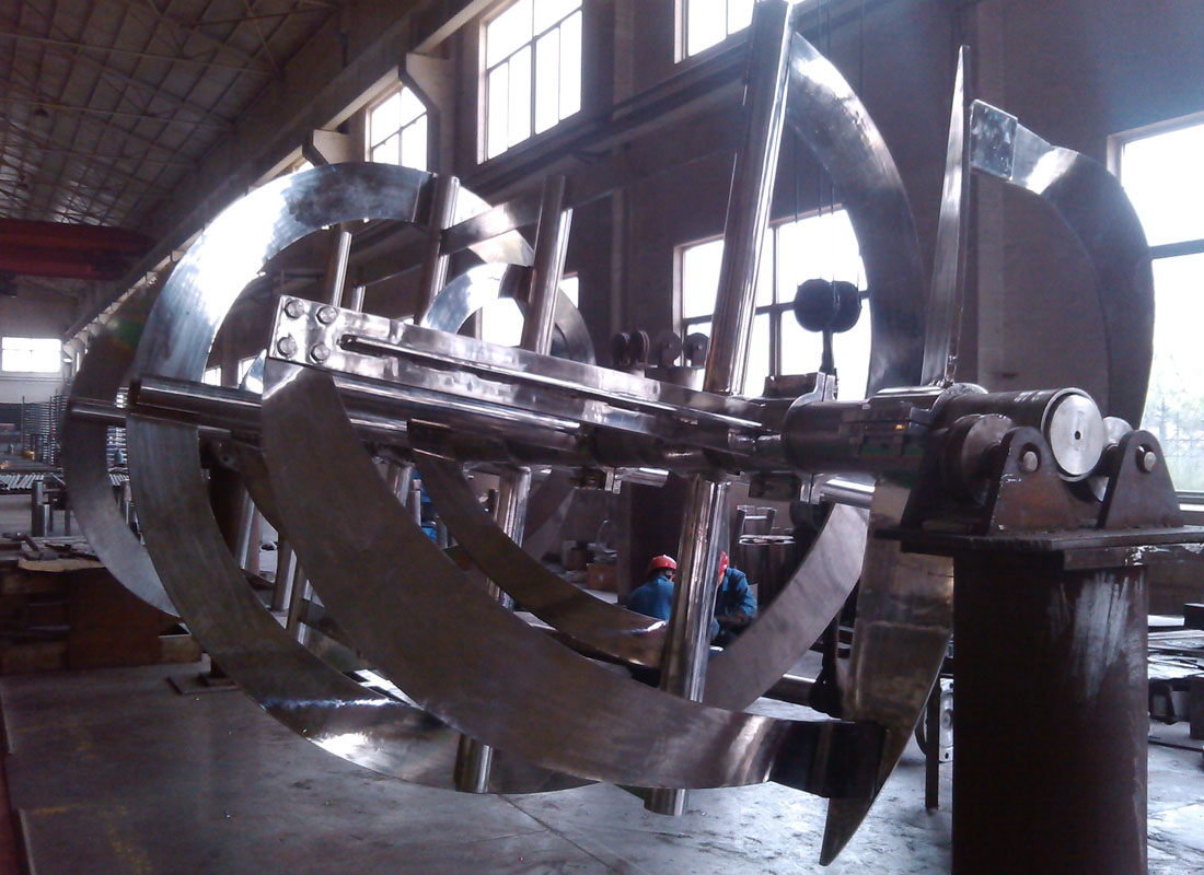 近期,我司與江西匯仁制藥的攪拌設(shè)備的合作項目已經(jīng)接近尾,從工廠的倉庫已經(jīng)可以看到環(huán)保部分?jǐn)嚢柙O(shè)備。其中,處理污水用的大型攪拌器,簡直是觸目驚心。也算是我見過最大的攪拌器了。光攪拌器就長達(dá)10米有余,高達(dá)3米左右??胺Q是攪拌器的中的巨無霸。還真不知道,這個攪拌機(jī)到最后的具體尺寸是多少!